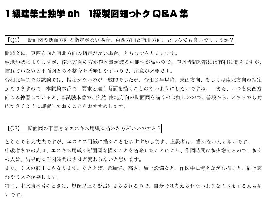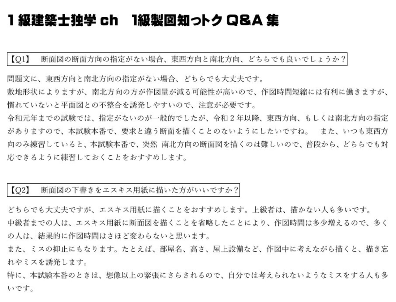 1級建築士 設計製図試験でよくある質問とその答え44個をまとめました。